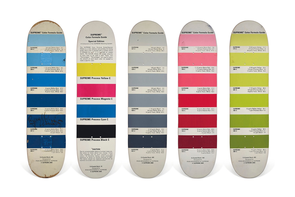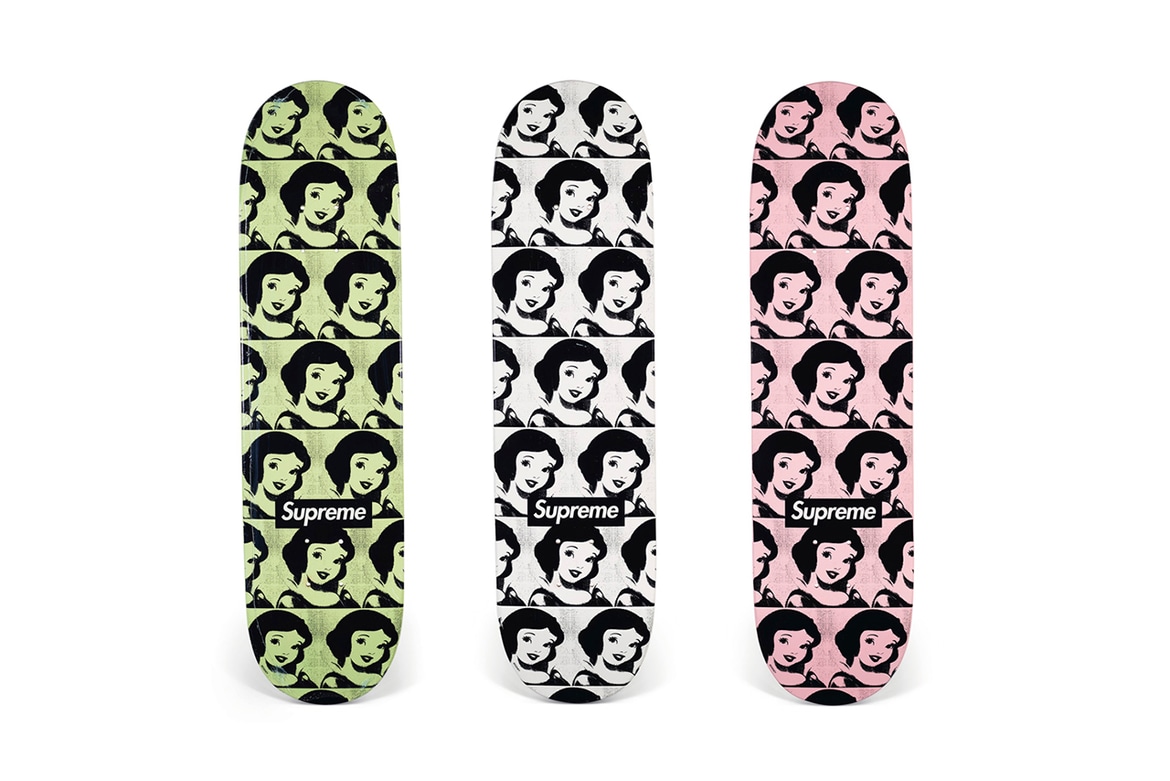 Sökta konstnärsskateboards finns också här, som åtföljer de åtråvärda tillbehören. Bland dessa finns föremål designade av Harmony Korine, Richard Prince, Damien Hirst, KAWS, Andrei Molodkin, Takashi Murakami, George Condo, Raymond Pettibon med flera. Tillsammans med konstnärssamarbetena finns en rad sällsynta skateboards som inkluderar original ”Copyright”-brädor från 1998, 2011 års ”Snow White”-brädor och en komplett uppsättning av de brädor som vann ett förbud från Louis Vuitton år 2000, plus det officiella samarbetsdäcket som släpptes 2017 (beräknas inbringa upp till 7 000 USD).